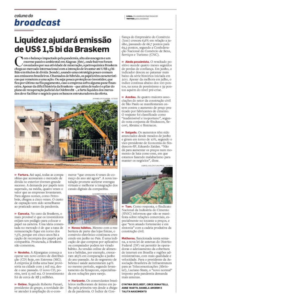 3. Notícia Hoje – Liquidez ajudará emissão de US$1,5 bi da Braskem