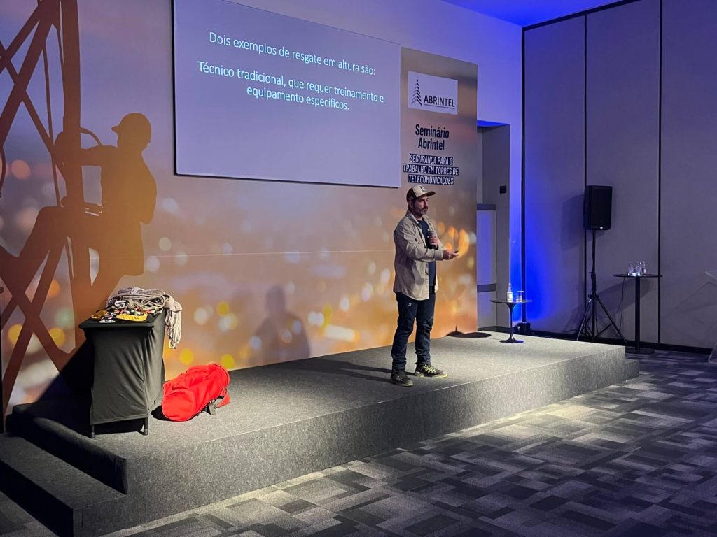O escalador Eduardo Bicudo, da empresa Keep Safe, empresa especializada em acesso por cordas e resgates em locais de difícil acesso, fez uma apresentação sobre resgate em altura para trabalhadores que atuam em torres para telecomunicações. “É muito melhor evitar uma queda do que remediá-la depois”, afirmou Bicudo, para expressar a importância das medidas de prevenção.